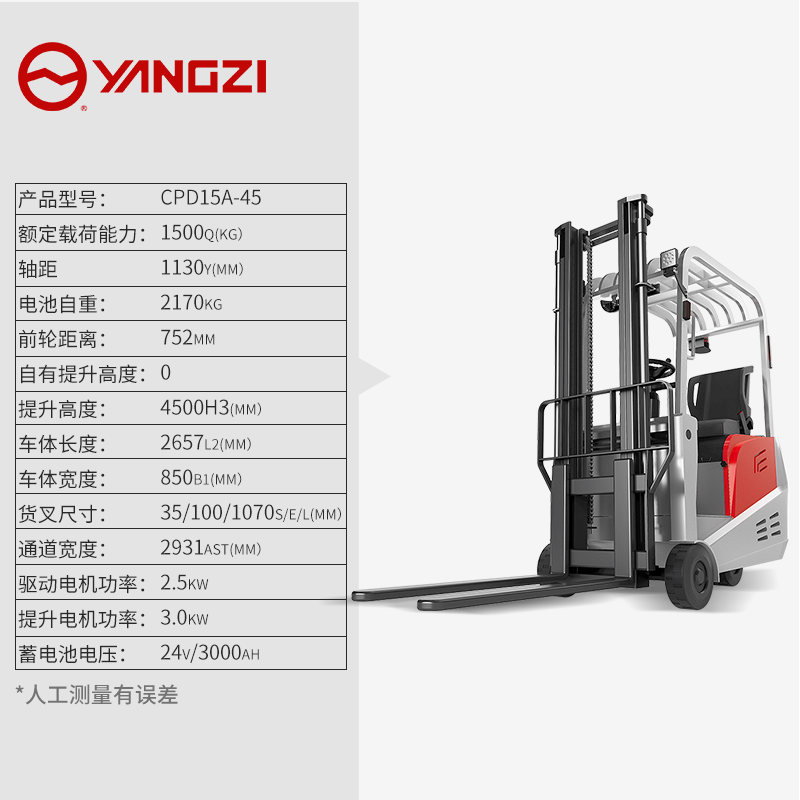 揚(yáng)子三支點(diǎn)座駕式平衡重電動(dòng)叉車(chē)CPD-A